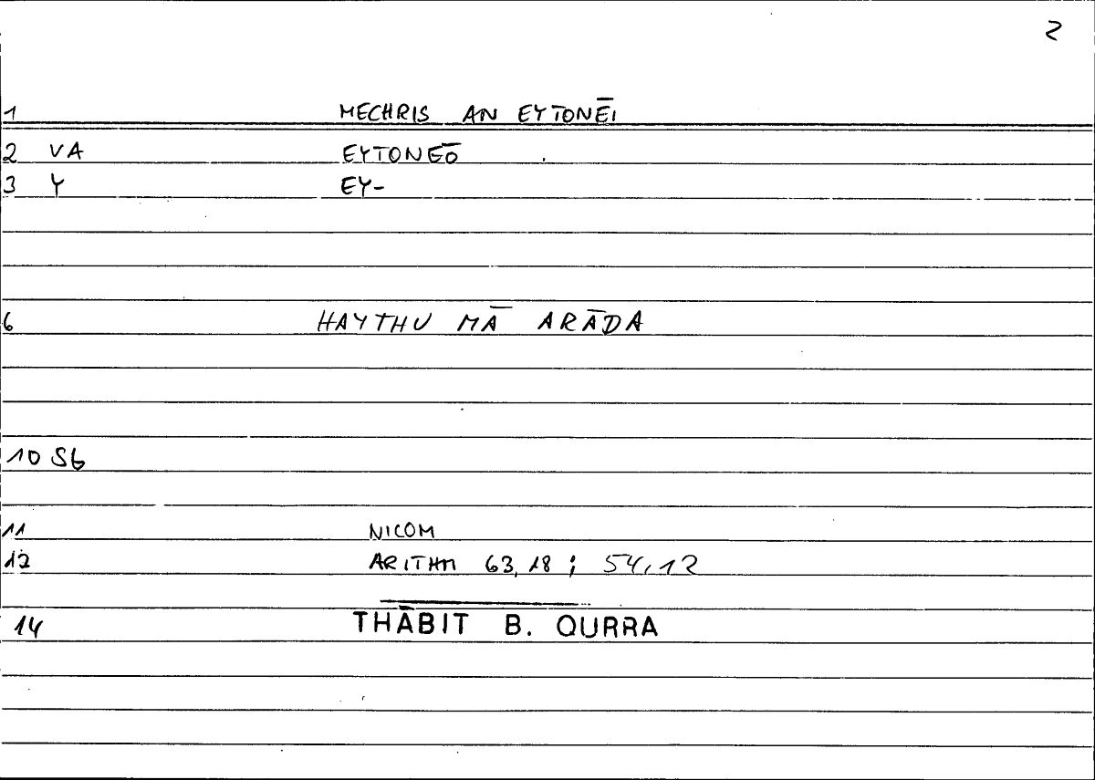 Nicomachus Gerasenus, Ṯābit ibn Qurra: Pythagorei Introductionis Arithmeticae