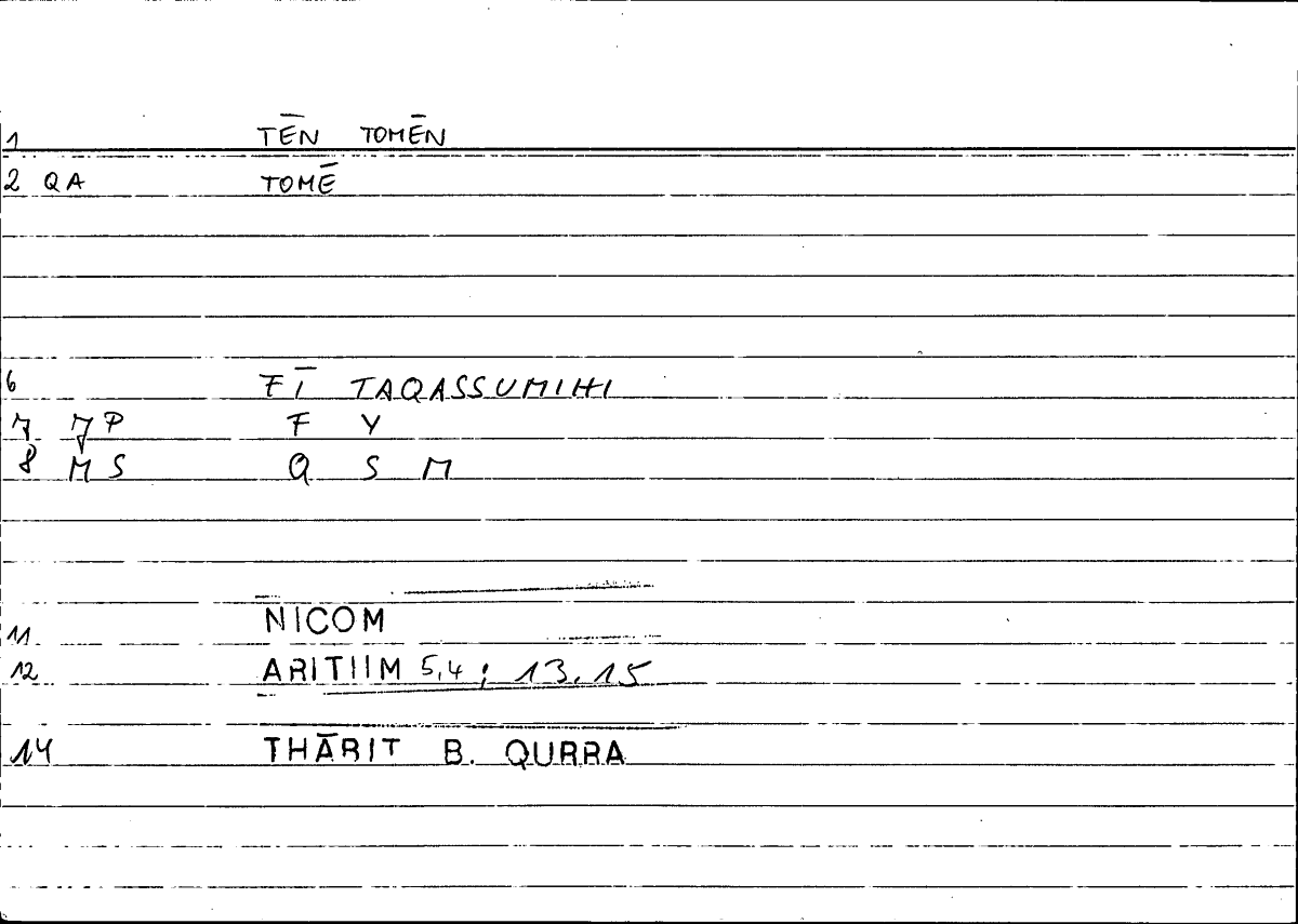 Filecard Folder: Nicom.Arithm