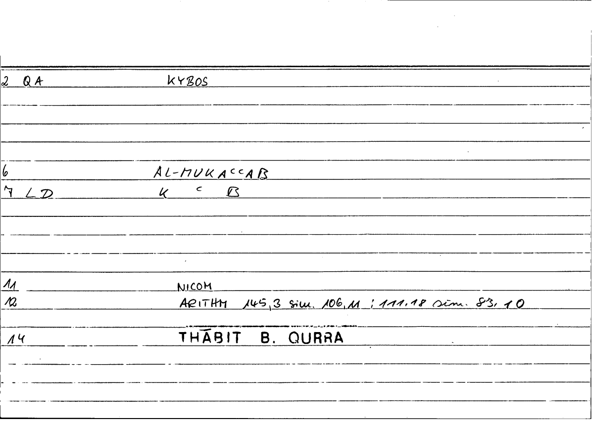 Nicomachus Gerasenus, Ṯābit ibn Qurra: Pythagorei Introductionis Arithmeticae