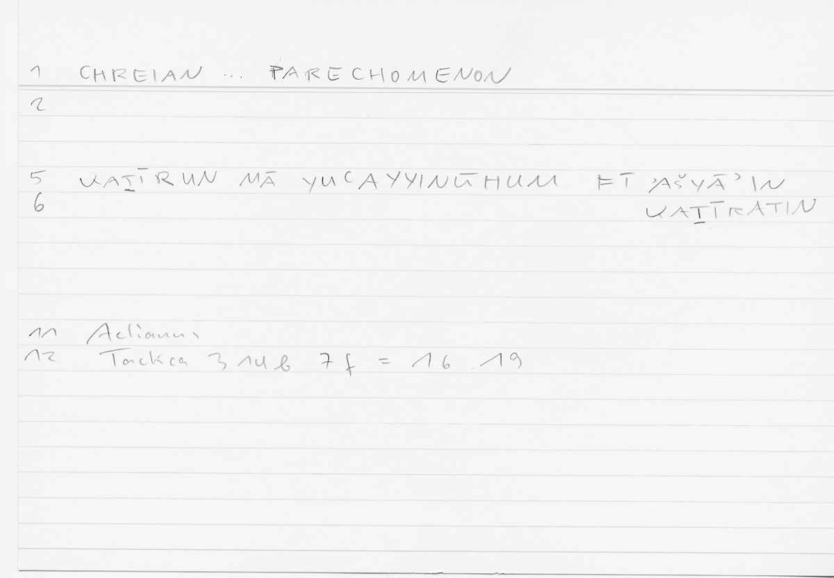 | Expression | χρείαν παρεχόμενον | kaṯīrun mā yuʿīnūhum fī ašyāʾin kaṯīratin |