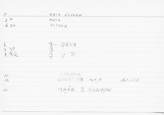 Every record of the glossary holds information on one translated word from Greek into Arabic. The records provide grammatical data and editor's comments as well. The transcription of the references is still in progress. If no reference is given here, you can check open the glossary by clicking on the lemma and consult the original filecard scan.
