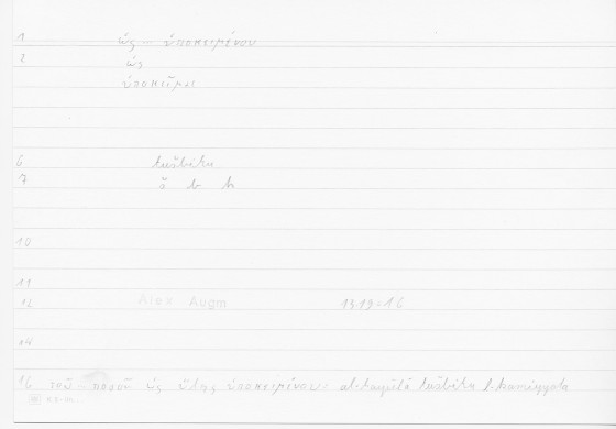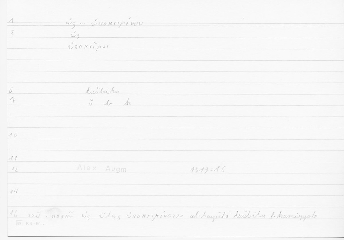 Every record of the glossary holds information on one translated word from Greek into Arabic. The records provide grammatical data and editor's comments as well. The transcription of the references is still in progress. If no reference is given here, you can check open the glossary by clicking on the lemma and consult the original filecard scan.