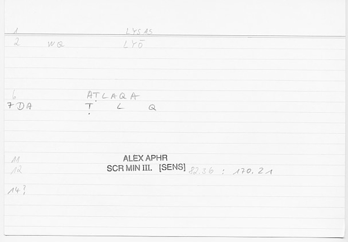 Every record of the glossary holds information on one translated word from Greek into Arabic. The records provide grammatical data and editor's comments as well. The transcription of the references is still in progress. If no reference is given here, you can check open the glossary by clicking on the lemma and consult the original filecard scan.