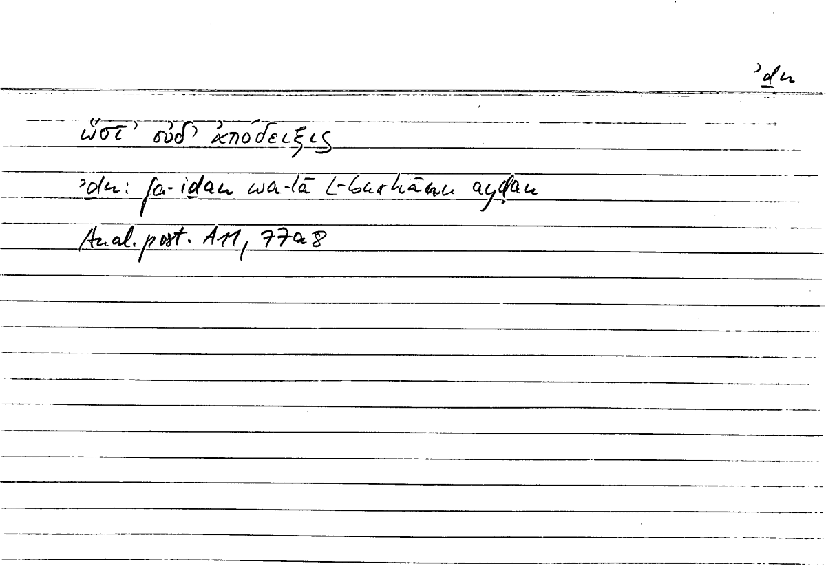| Expression | ὥστ' οὐδ' ἀπόδειξις | fa-iḏan wa-lā l-burhānu ayḍan |