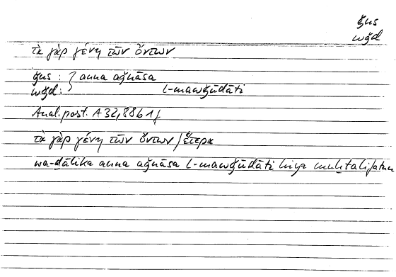 | Expression | τὰ γὰρ γένη τῶν ὄντων | anna aǧnāsa l-mawǧūdāti |
