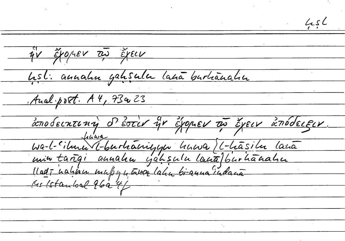 Expressionἣν ἔχομεν τῷ ἔχεινannahu yaḥṣulu lanā burhānahu