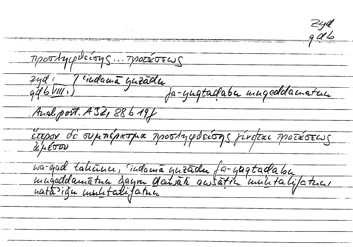 | Expression | προσληφθείσης...προτάσεως | ʿindamā yuzādu fa-yuqtaḍabu muqqadamatun |