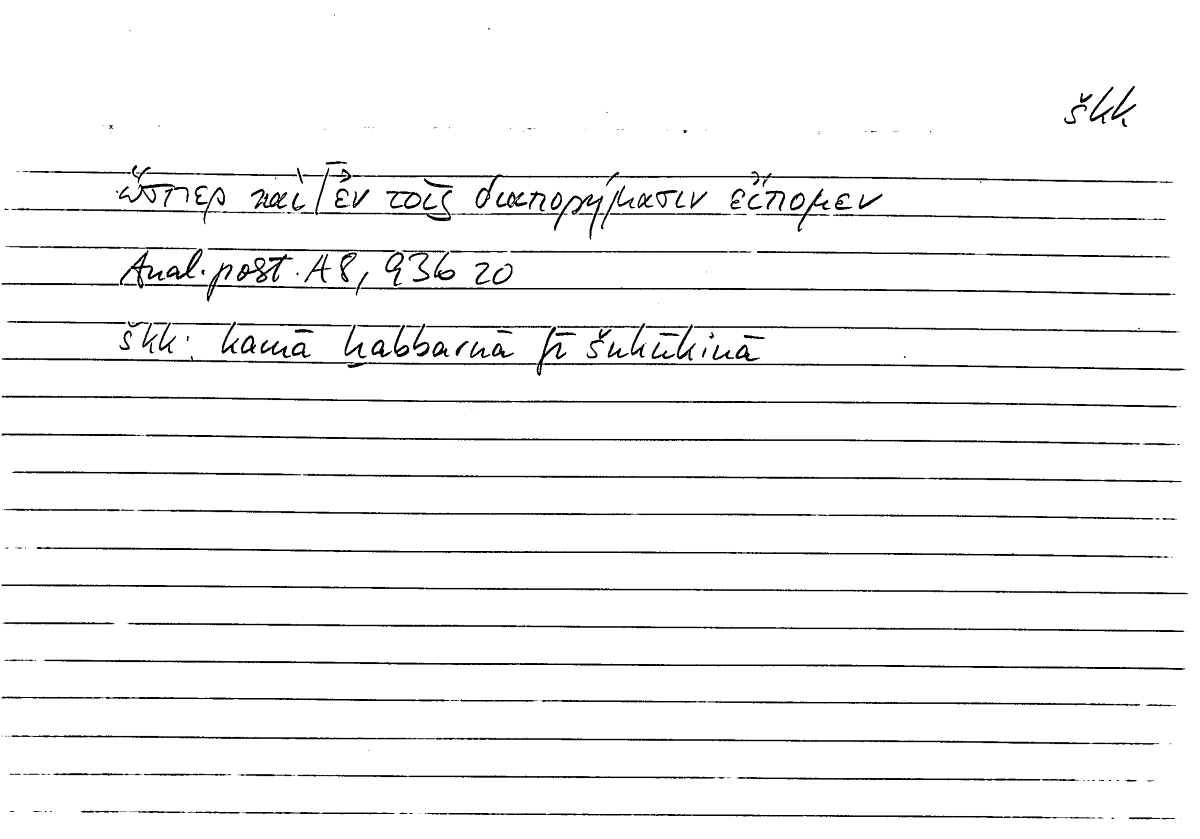 Expressionὥσπερ καὶ / ἐν τοῖς διαπορήμασιν εἴπομενkamā ḫabbarnā fī šukūkinā