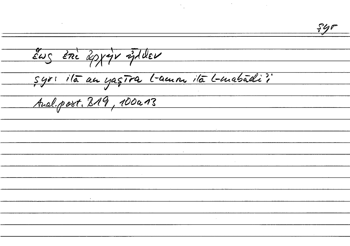 Expressionἕως ἐπὶ ἀρχὴν ἦλθενilā an yaṣīra l-amru ilā l-mabādiʾi