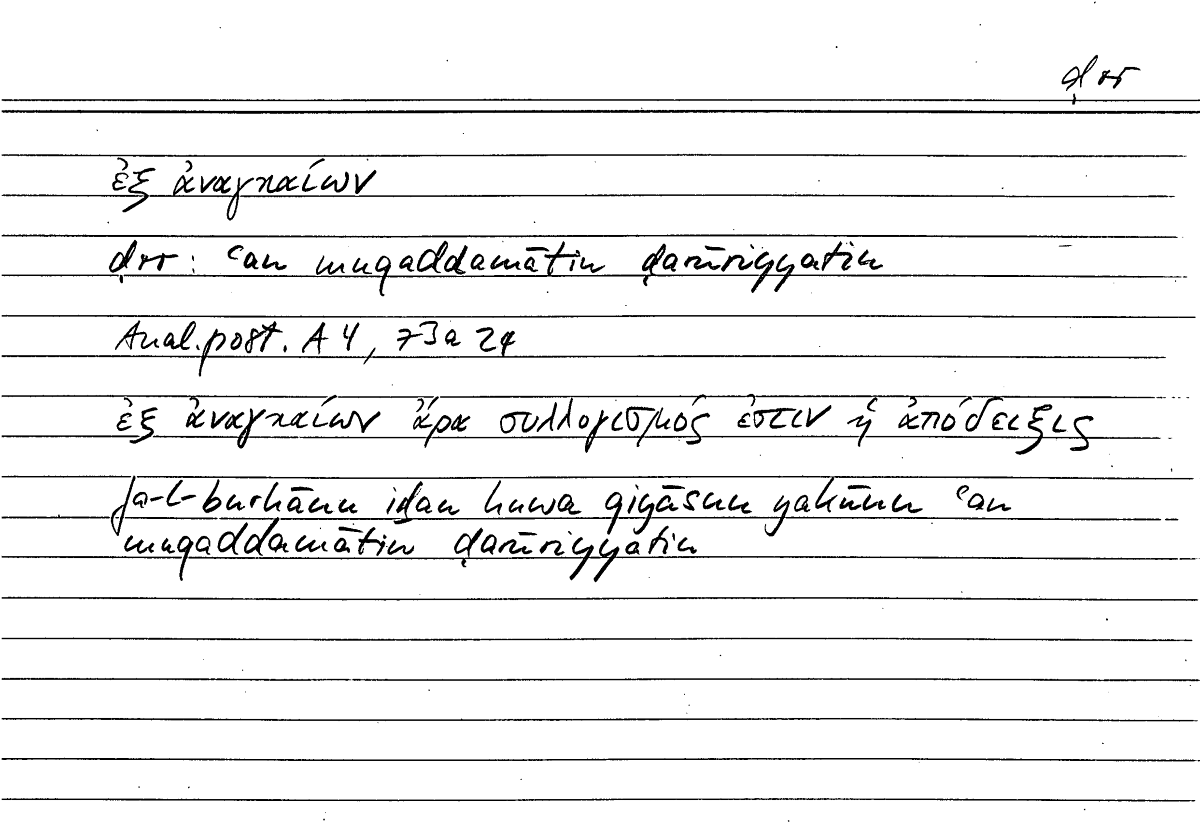 Expressionἐξ ἀναγκαίωνʿan muqaddamātin ḍarūriyyatin