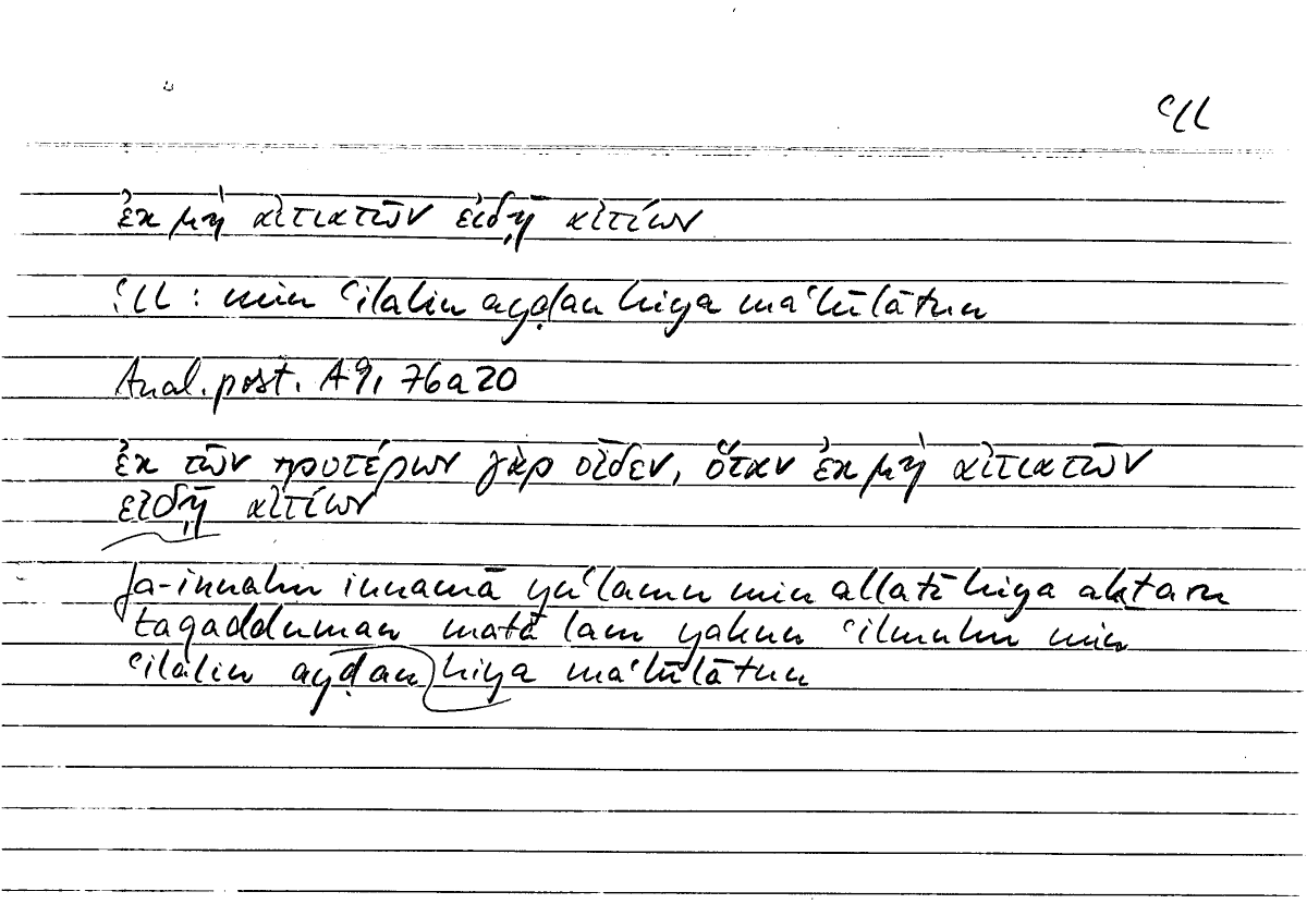 Expressionἐκ μὴ αἰτιατῶν εἰδῇ αἰτίωνmin ʿilalin ayḍan hiya maʿlūlātun