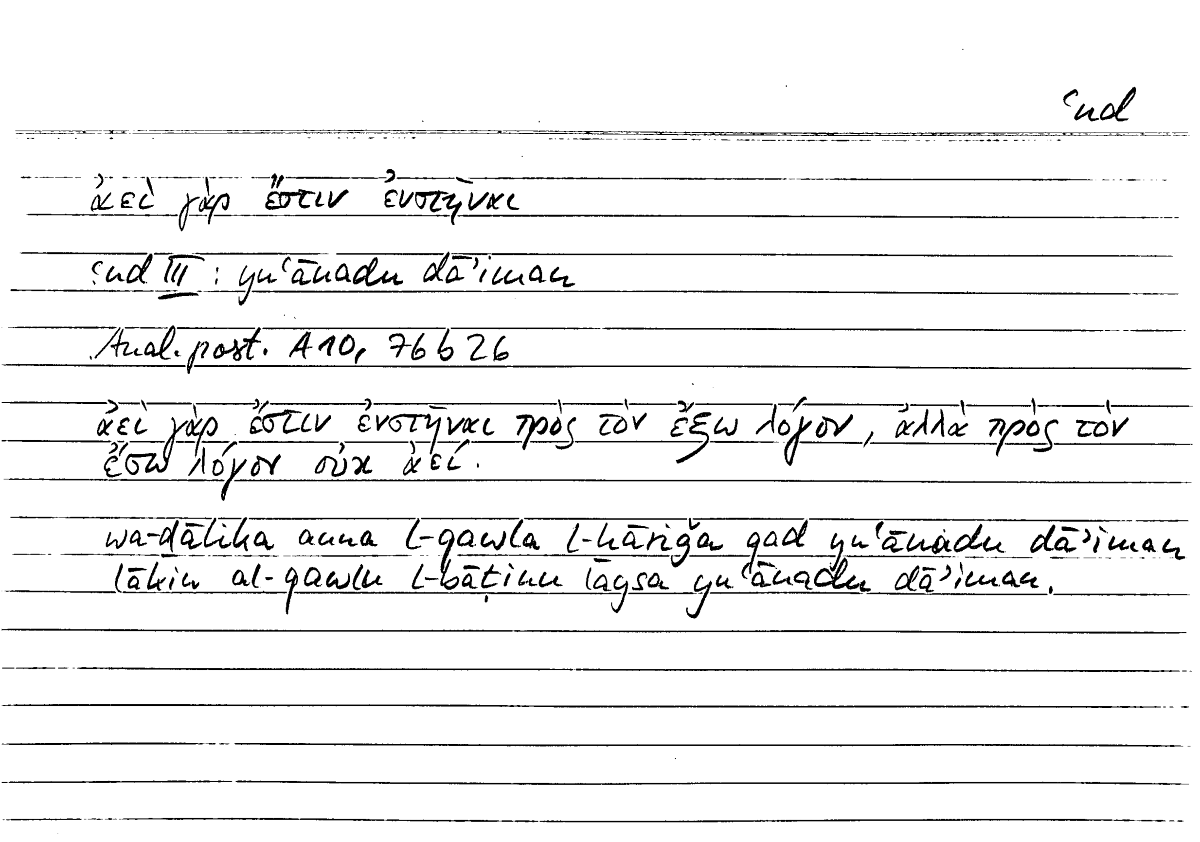 Expressionἀεὶ γὰρ ἔστιν ἐνστῆναιyuʿānadu dāʾiman