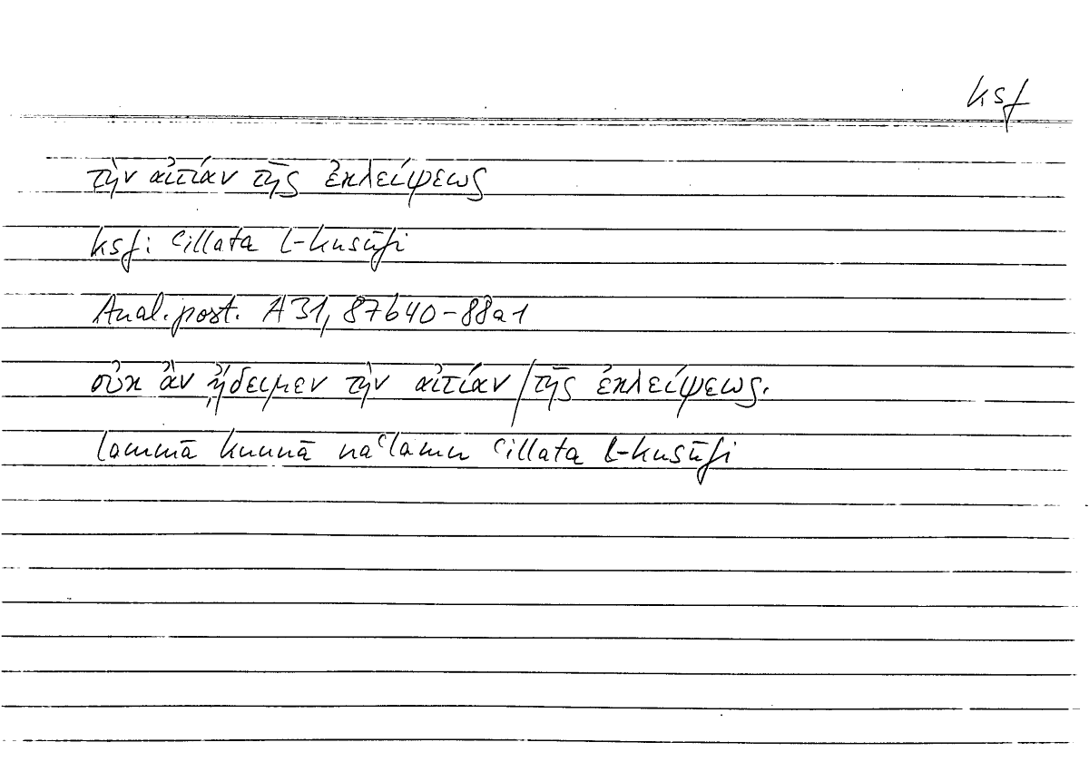 Expressionτὴν αἰτίαν τῆς ἐκλείψεωςʿillata l-kusūfi