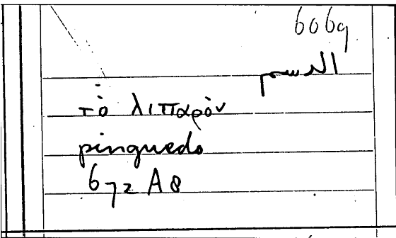 Every record of the glossary holds information on one translated word from Greek into Arabic. The records provide grammatical data and editor's comments as well. The transcription of the references is still in progress. If no reference is given here, you can check open the glossary by clicking on the lemma and consult the original filecard scan.