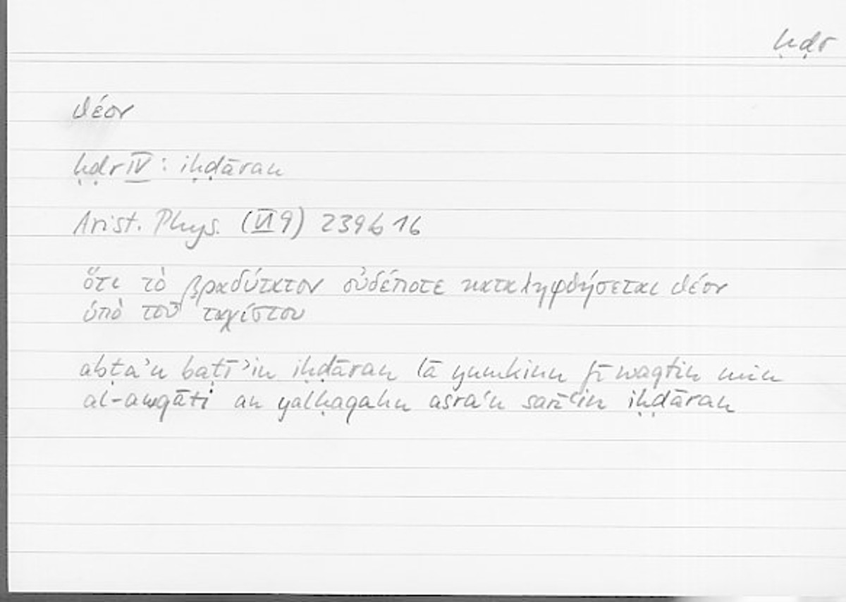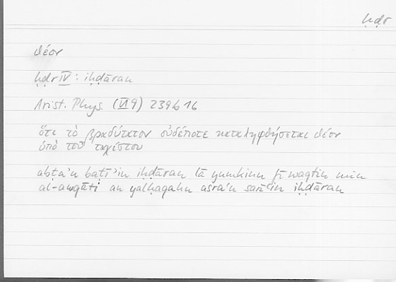Every record of the glossary holds information on one translated word from Greek into Arabic. The records provide grammatical data and editor's comments as well. The transcription of the references is still in progress. If no reference is given here, you can check open the glossary by clicking on the lemma and consult the original filecard scan.