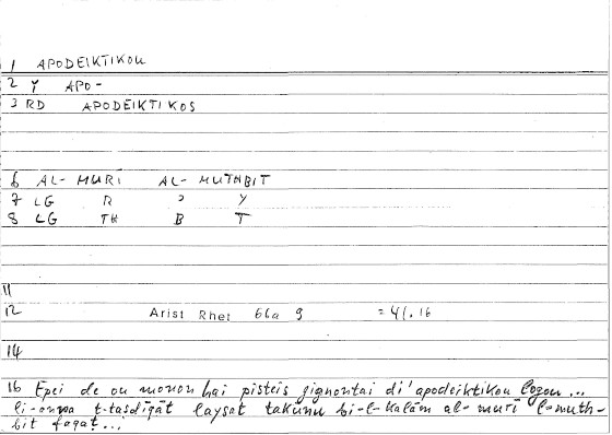 | Lexeme | ἀποδεικτικός | مثبت |