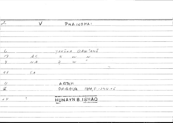 Every record of the glossary holds information on one translated word from Greek into Arabic. The records provide grammatical data and editor's comments as well. The transcription of the references is still in progress. If no reference is given here, you can check open the glossary by clicking on the lemma and consult the original filecard scan.