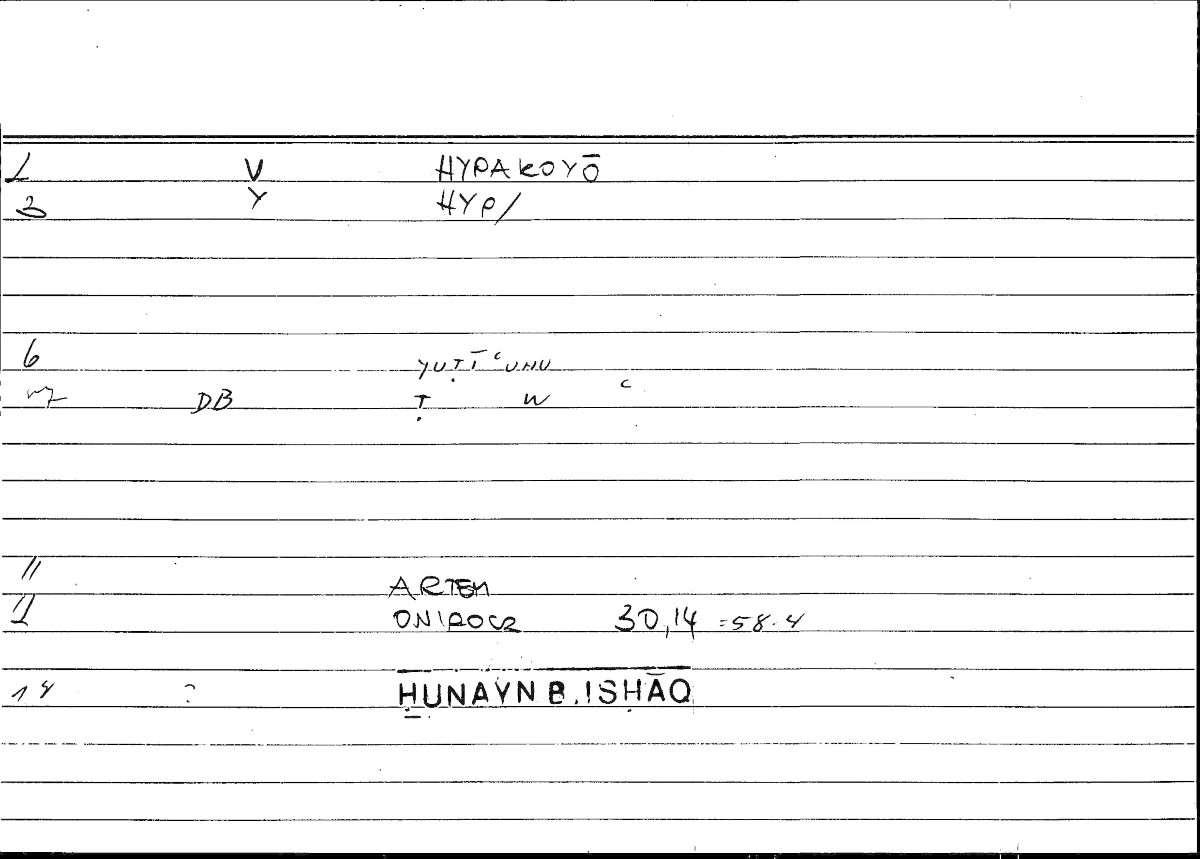 Every record of the glossary holds information on one translated word from Greek into Arabic. The records provide grammatical data and editor's comments as well. The transcription of the references is still in progress. If no reference is given here, you can check open the glossary by clicking on the lemma and consult the original filecard scan.