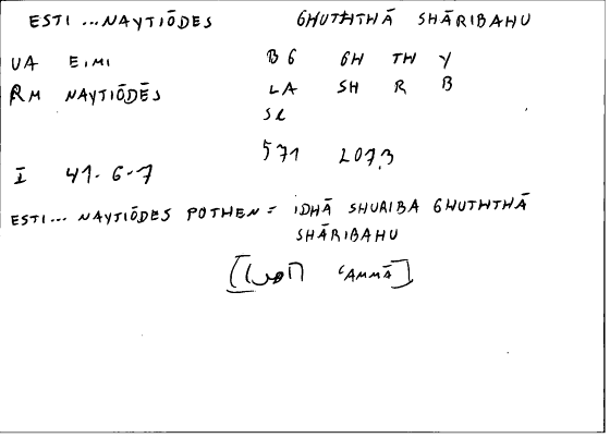 | Quotation | ἔστι δὲ καὶ ναυτιῶδες ποθέν | ġaṯṯā šāribahū |