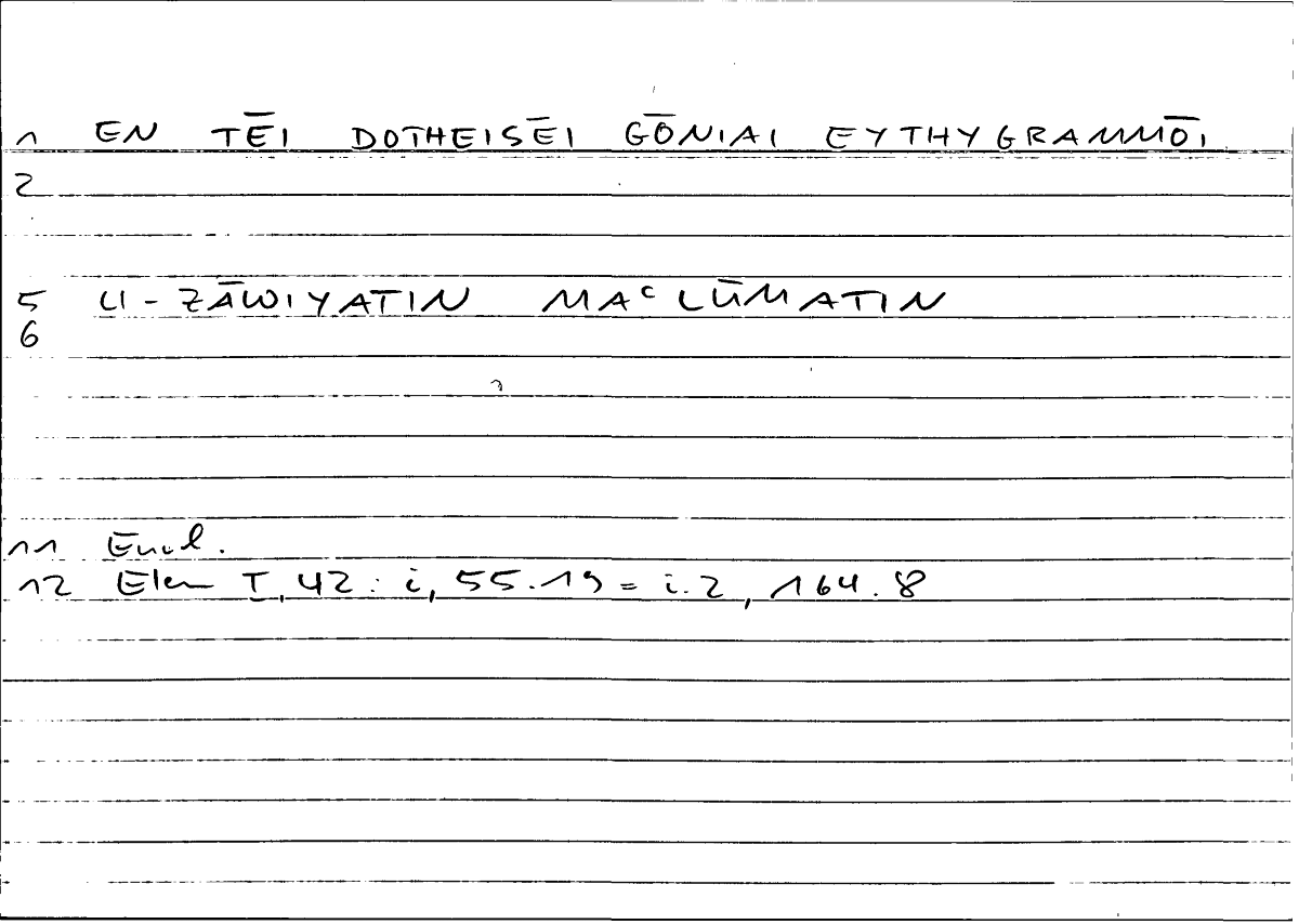 Expressionἐν τῂ δοθεῖσῃ γωνίαι εὐθύγραμμοιli-zāwiyatin maʿlūmatin