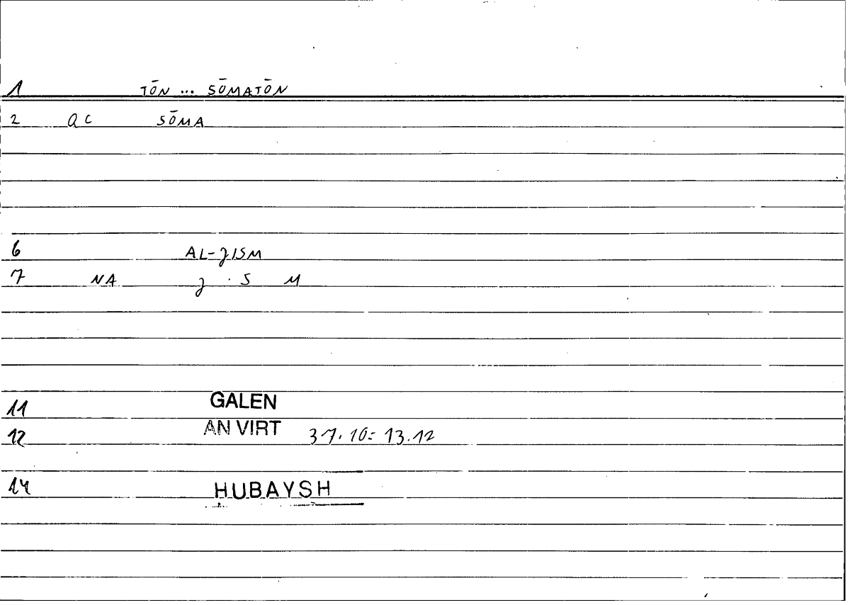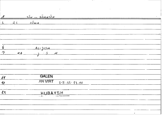 | Quotation | τὴν ἑτέραν ἀρχὴν τῶν φυσικῶν σωμάτων σῶμα δημιουργοῦσαν | al-šayʾayni l-awwalayni llaḏayni ʿanhumā yakūnu al-ǧismu l-ṭabīʿiyyu |