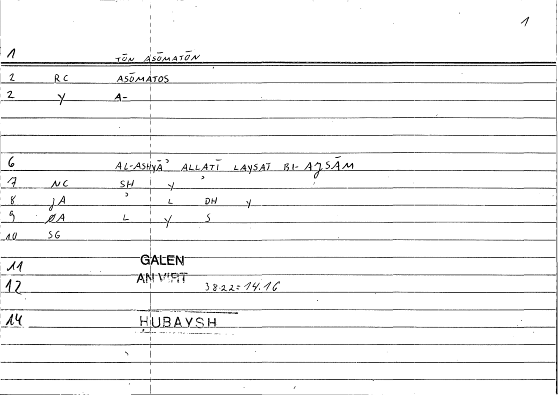 | Expression | τὰ ἀσώματα | al-ašyāʾu llatī laysat bi-aǧsāmin |