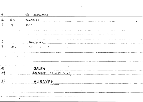 | Quotation | γνῶσις τῆς διαφορᾶς τῶν ἐν τοῖς μικροῖς παιδίοις φαινομένων ἔργων τε καὶ παθῶν τῆς ψυχῆς | maʿrifatu ḫtilāfi afʿāli l-nafsi wa-ālāmihā l-ẓāhirati fī l-ṣibyāni l-ṣiġāri |