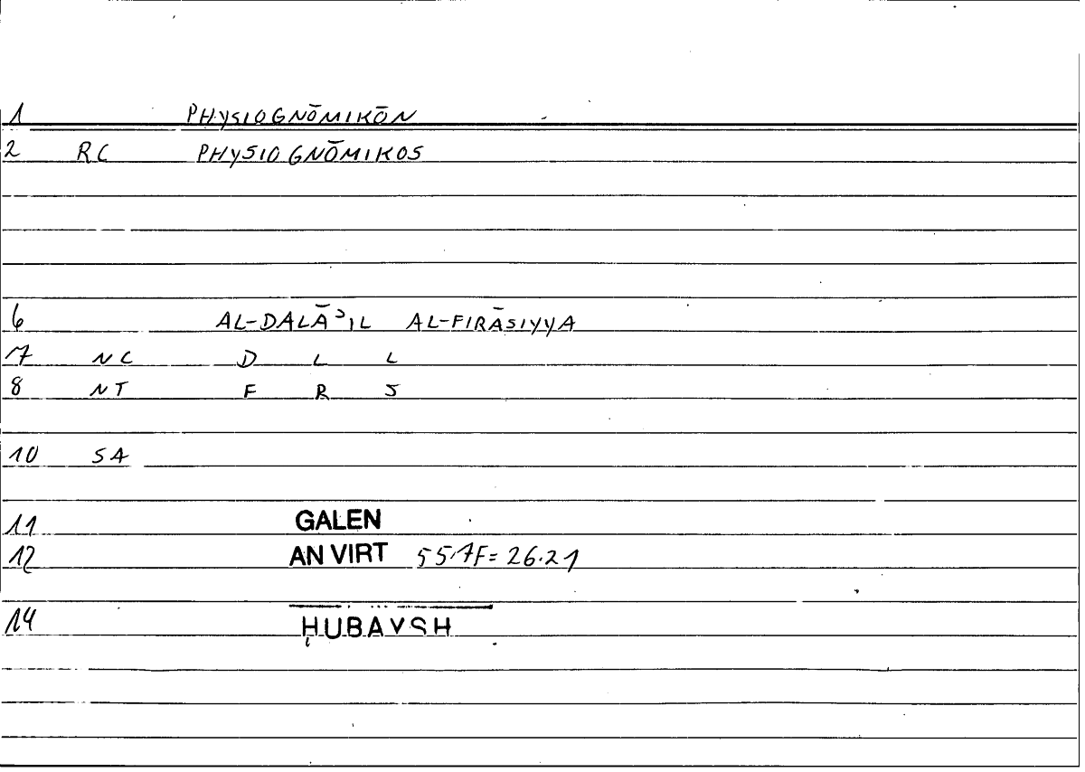 | Expression | τῶν φυσιογνωμονικῶν (sc. τὰ σημεῖα) | al-dalāʾilu l-firāsiyyatu |