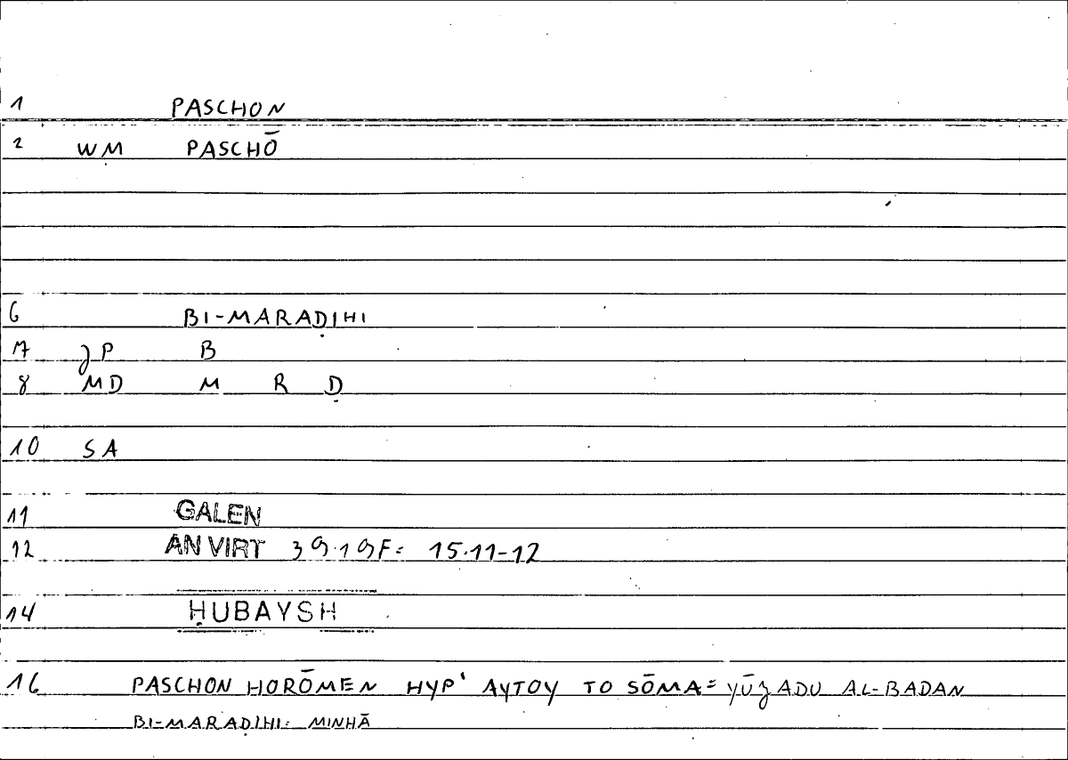 Glossary: πάσχω مرض