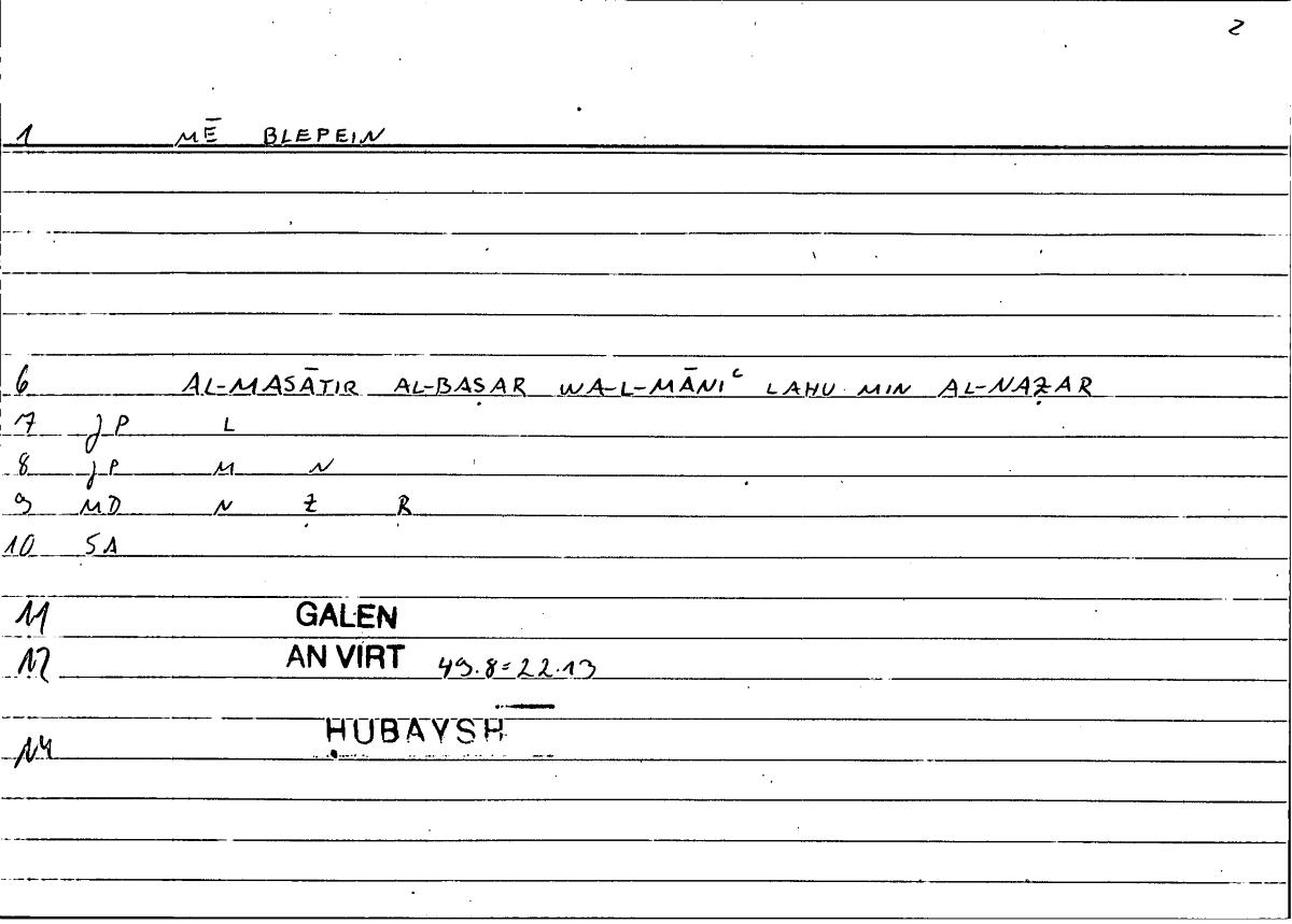 | Quotation | παραπλήσιον εἶναι δόξει τῷ μὴ βλέπειν διὰ λήμην ἢ ὑπόχυσιν | fa-innahū yušbihu mā yaʿriḍu fī l-ʿayni mina l-qaḏā awi l-māʾi l-musātiri li-l-baṣari wa-l-māniʿi lahū mina l-naẓari |