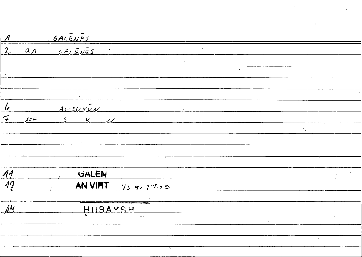 | Reference | Galen An. virt. 43.5 | 17.19 |