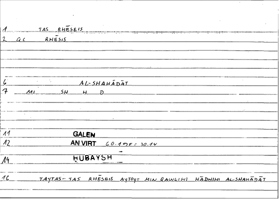 | Expression | ταύτας ... τὰς ῥήσεις αὐτοῦ | min qawlihī hāḏihi l-šahādātu |