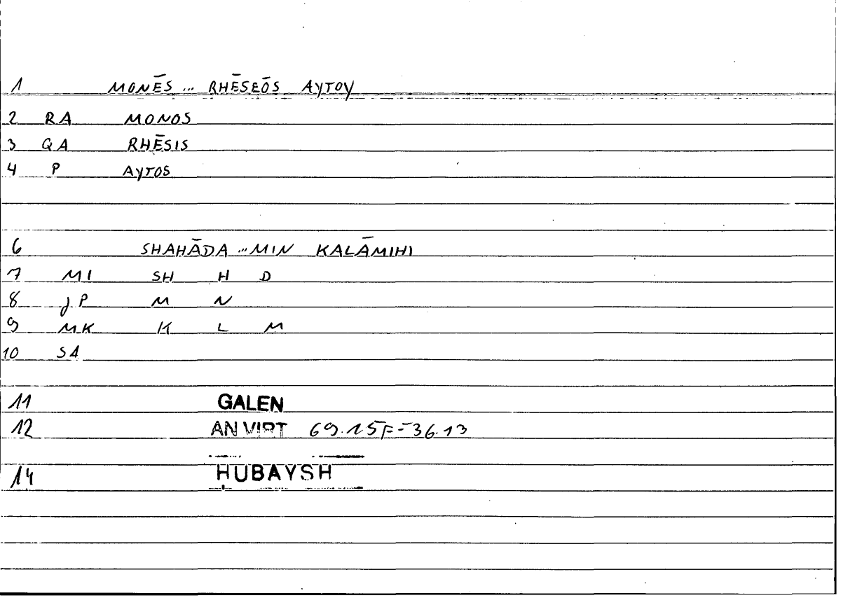 Expressionμόνης ... ῥήσεως αὐτοῦšahādātun ... min kalāmihī