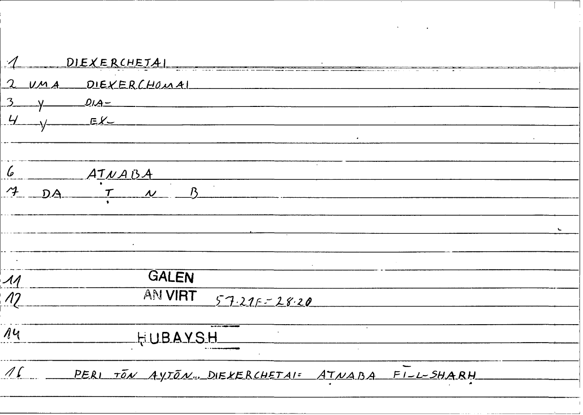 | Expression | περὶ τῶν αὐτῶν ... διεξέρχεται | aṭnaba fī l-šarḥi |
