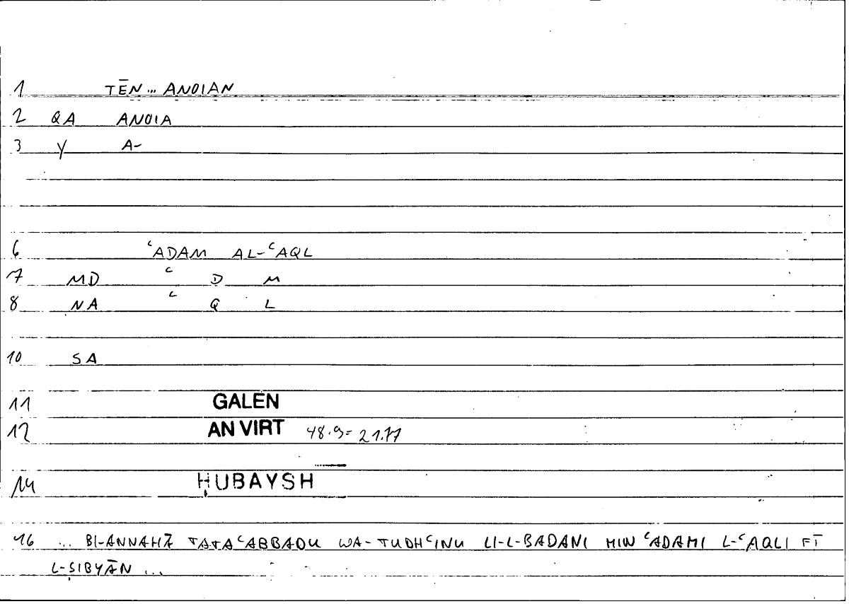 | Expression | ἄνοια | ʿadamu l-ʿaqli |