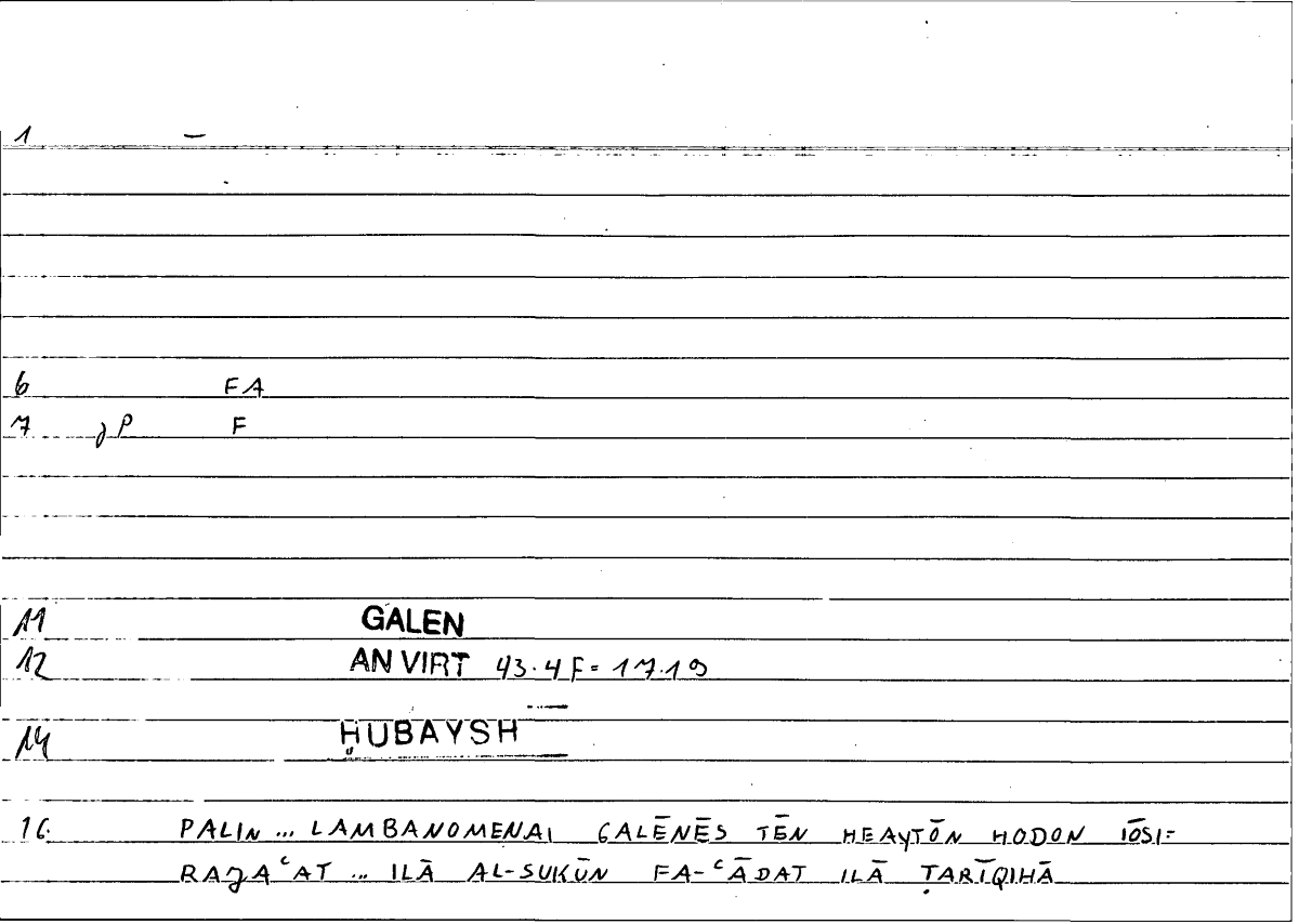 | Quotation | πάλιν ... λαμβανόμεναι γαλήνης τὴν ἑαυτῶν ὁδὸν ἴωσι | raǧaʿat … ilā l-sukūni fa-ʿādat ilā ṭarīqihā |