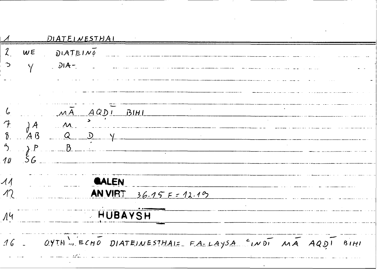 | Expression | οὔθ᾿ ... ἔχω διατείνεσθαι | laysa ʿindī mā aqḍī bihī |