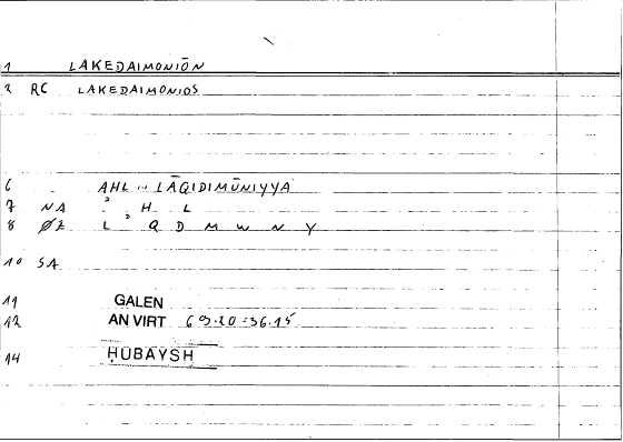 | Lexeme | Λακεδαιμόνιος | أهل |