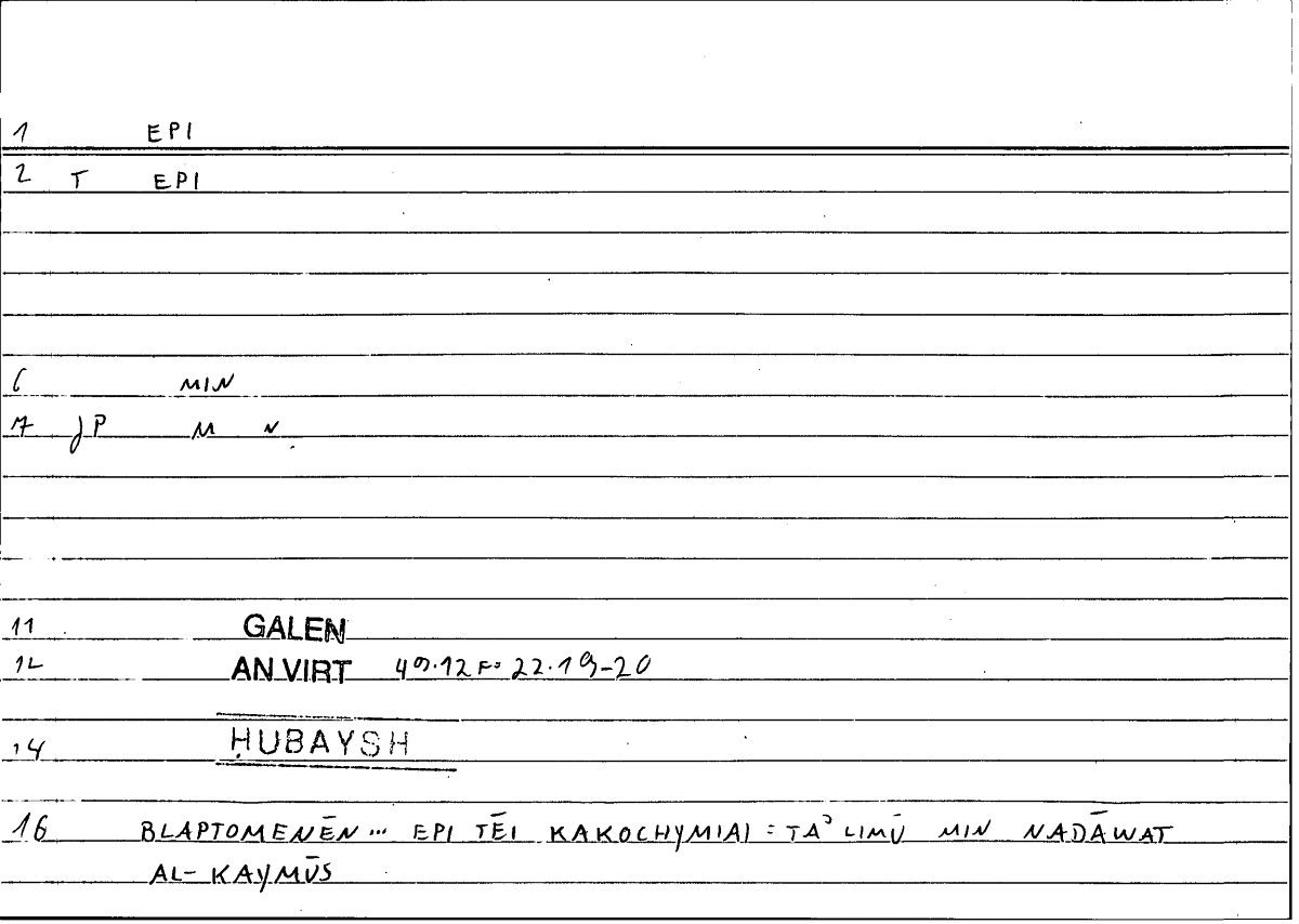 | Annotation | – | radāʾati ... takūnu nos : radāʾati l-kaymūsi [llatī] yakūnu Biesterfeldt Ǧālīnūs 136 : nadāwati l-kaymūsi [takūnu] ed. |
