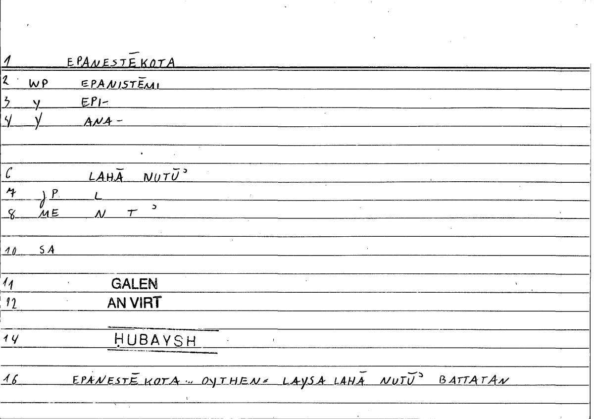 | Expression | ἐπανεστηκότα ... οὐθὲν | laysa lahā nutūʾun battatan |