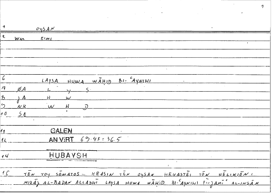 | Expression | οὖσαν | wāḥidun bi-ʿaynihī |
