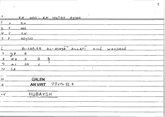 | Expression | ἐν οἷς ..., ἐν τούτοις αὐτοῖς | bi-sababi l-ašyāʾi llatī bihā waḥdahā |