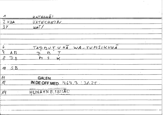 Every record of the glossary holds information on one translated word from Greek into Arabic. The records provide grammatical data and editor's comments as well. The transcription of the references is still in progress. If no reference is given here, you can check open the glossary by clicking on the lemma and consult the original filecard scan.