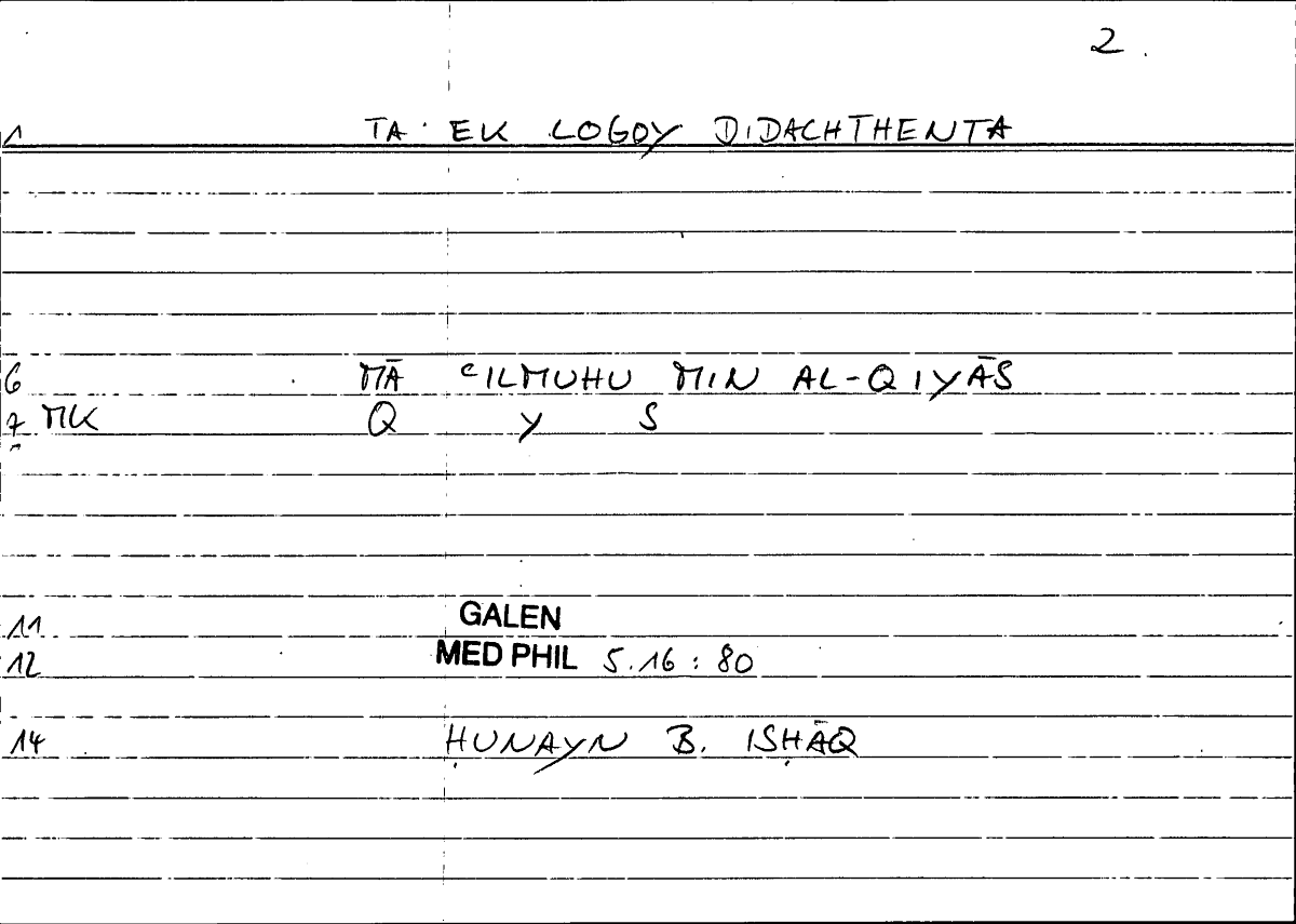Expressionτὰ ἐκ λόγου διδαχθένταmā ʿilmuhu mina l-qiyāsi