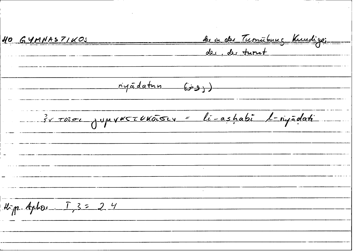 | Expression | οἱ γυμναστικοί | aṣḥābu l-riyāḍati |