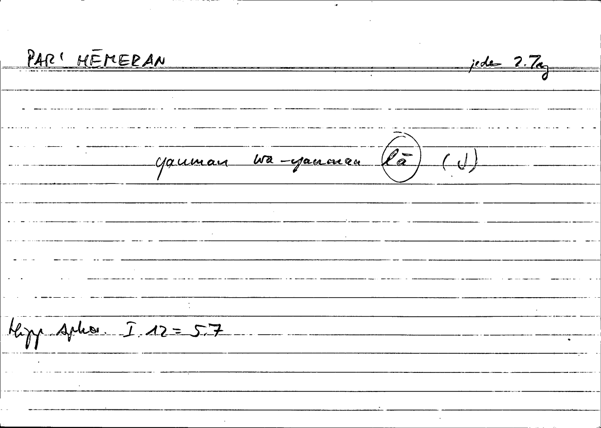 Expressionπαρ' ἡμέρηνyawman wa-yawman lā