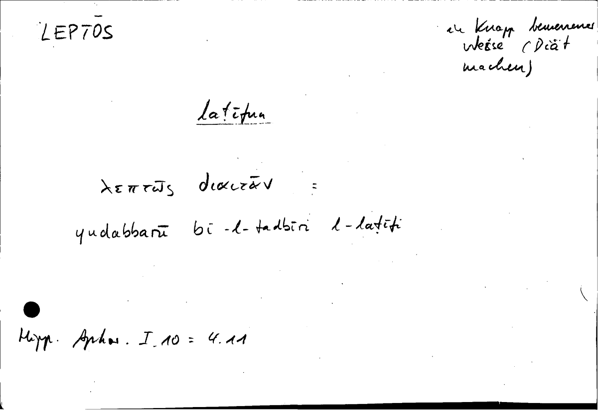 | Expression | λεπτῶς διαιτᾶν | dabbara bi-l-tadbīri l-laṭīfi |
