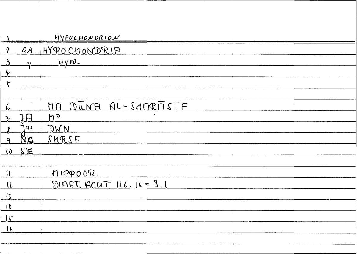 | Expression | τὸ ὑποχόνδριον | mā dūna l-šarāsīfi |