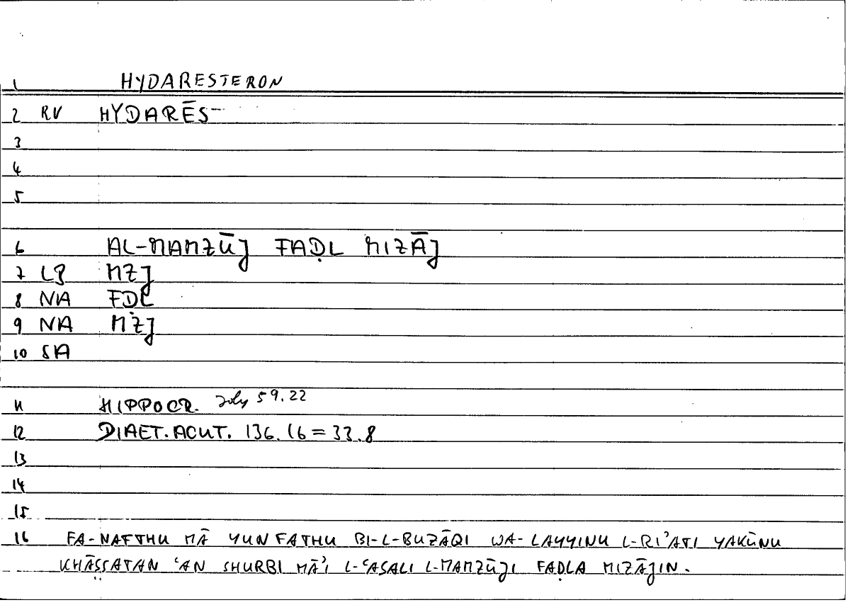 | Expression | ὑδαρρέστερος | mamzūǧu faḍli mizāǧin |