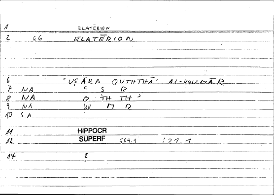 | Expression | ἐλατήριον | ʿuṣāratu quṯṯāʾi l-ḫumāri |